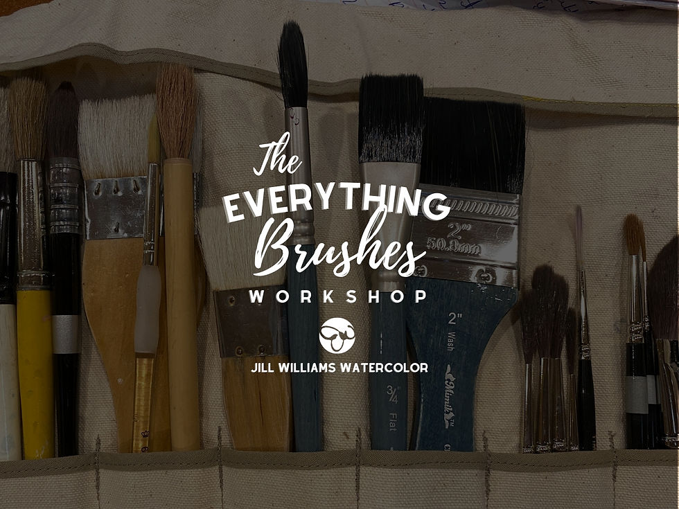 Master Brush Selection with Ease! Save money and discover expert tips to choose the perfect watercolor brush for your art. Unlock Jill’s proven techniques to elevate your painting process with the 6 part series. PDF Workbook is included.